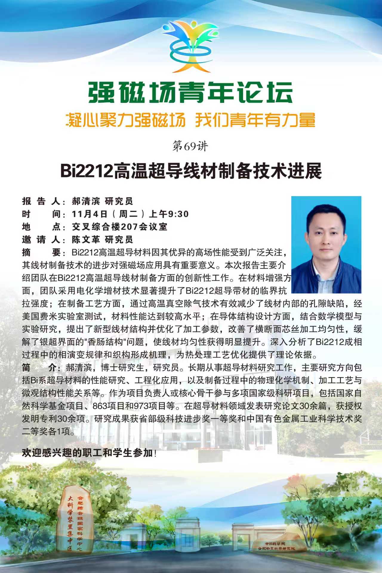 强磁场青年论坛第69讲(11.04):Bi2212高温超导线材制备技术进展