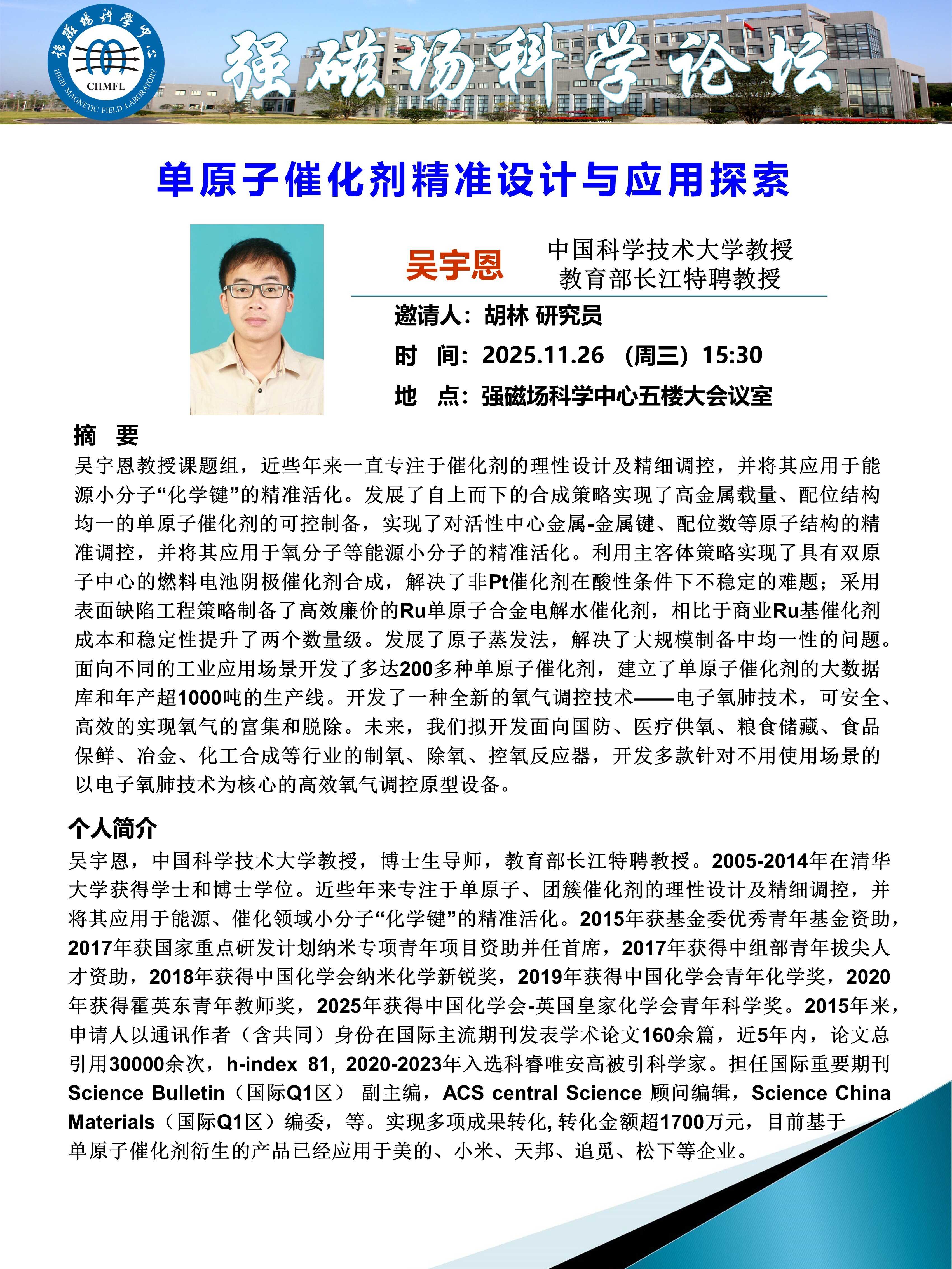 强磁场科学论坛(11.26):单原子催化剂精准设计与应用探索