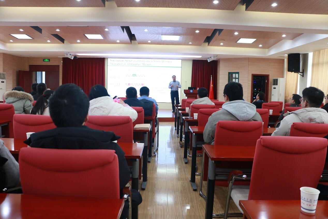 12月31日,中国人民大学物理学院于伟强教授做客强磁场科学论坛,作了题为“核磁共振探测量子磁性材料中的分数化激发”的学术报告,报告会由强磁场中心田明亮研究员主持。