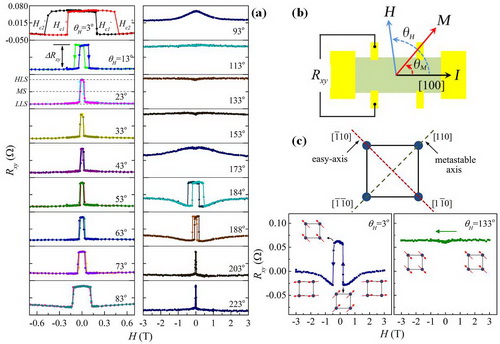 近日,强磁场科学中心田明亮研究员课题组在强关联电子材料Sr4Ru3O10的平面磁结构研究方面取得新进展,相关研究以“In-plane magnetic anisotropy of the Sr4Ru3O10nanosheet probed by planar Hall effect”为题发表在<<应用物理快报>>(Applied Physics Letters)上。