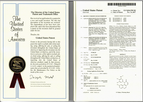 该专利于2015年1月27日向国际专利局申请PCT专利,获得具有“新颖性、创造性和工业实用性”的国际阶段审查结论,并于2016年12月19日进入美国国家阶段申请。历时近一年后获得了授权。