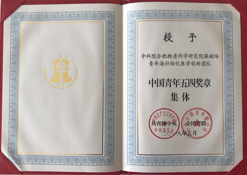 “中国青年五四奖章”是共青团中央、全国青联授予中国优秀青年的最高荣誉,旨在树立和宣传政治进步、品德高尚、贡献突出的优秀青年典型。第22届评选,全国共推报30个集体,最终有10个集体被授予“中国青年五四奖章集体”。5月3日,共青团中央、全国青联共授予中科院合肥物质研究院强磁场青年海归转化医学创新团队等10个集体为第22届“中国青年五四奖章集体”。