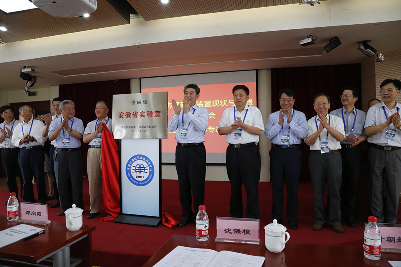 5月18日至19日,国家稳态强磁场装置现状与发展战略研讨会在合肥召开。省委常委、常务副省长邓向阳,安徽省科技厅厅长宛晓春,中科院前沿科学局副局长黄敏,合肥市常务副市长罗云峰、中科院合肥研究院院长匡光力等领导出席并为强磁场安徽省实验室揭牌。