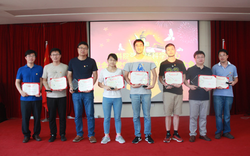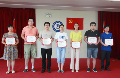 会议表彰了2017-2018年强磁场中心先进党支部和优秀共产党员、优秀党务工作者,党委书记孙玉平、纪委书记邱宁,党委委员田明亮、纪委委员盛志高为中心先进党支部——第三党支部,中心优秀共产党员李志元、吴芳明、徐烟红、蒋冬辉、郝宁、张蕾和中心优秀党务工作者陈峰颁发了荣誉证书。
