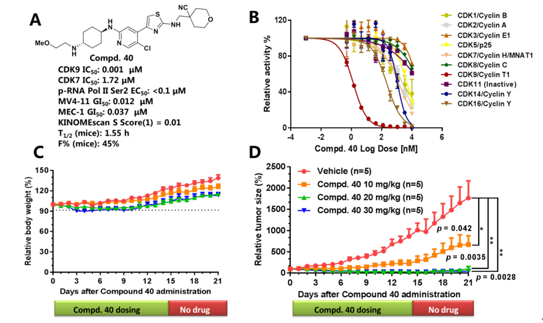 JSH-150(compd. 40)的生物学表征及对MV4-11肿瘤细胞小鼠模型的抑瘤作用