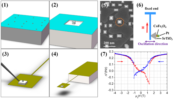 纳米磁性结构在很多研究和工业领域都具有重要应用,如拓扑磁性、低维磁性、高密度磁记录,磁传感器和生物医学应用。在这些研究和应用中,纳米磁性结构的磁各向异性、矫顽力、饱和磁化的定量分析是十分重要的。受限于磁探测灵敏度,商用振动磁强计无法分辨单个纳米样品磁矩变化。要获得足够的信号强度,商用振动磁强计需要同时测量几百万个样品,只能得到这些纳米样品的平均性质和参数。因此,要深入研究纳米磁性,就需要对单个纳米样品的磁性进行表征。