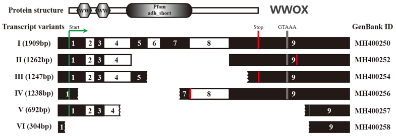 WWOX基因胚系纯合突变导致多个异常转录产物