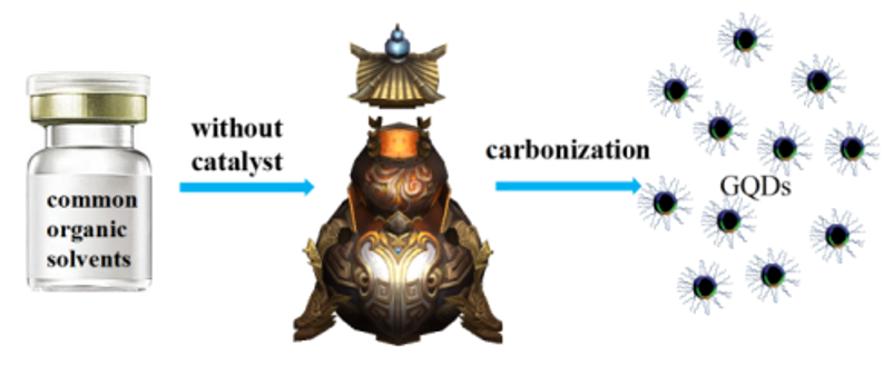 图.直接碳化有机溶剂形成GQDs的机理示意图。