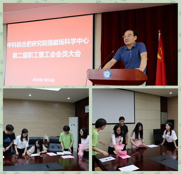 研究院工会委员吴桂宣读《关于同意强磁场科学中心第一届工会委员会换届的批复》。王英俭主席指出,工会是党联系职工群众的桥梁和纽带,是广大职工信赖的“职工之家”,在维护职工合法权益,推进民主管理、促进和谐发展中起着极为重要的作用。中心党委书记许安代表第一届工会委员会做工作汇报。报告认真总结了五年来在上级工会及中心党委的领导下,第一届工会委员会在保障职工权益,鼓励职工争先创优、积极组织文体活动,强化职工健身意识、关爱女职工,情暖半边天等方面的特色工作,并提出在今后的工作中要进一步发挥工会民主管理与民主监督的作用,充分调动职工积极性,围绕中心“十四五”发展目标,凝心聚力。