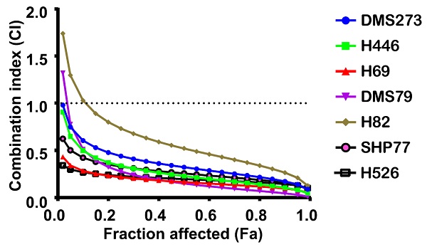 林文楚课题组在前期发现PI3K/AKT/mTOR信号通路在绝大部分小细胞肺癌中激活的基础上,进一步在挖掘临床肺癌样本和肺癌细胞系高通量测序大数据的过程中发现一类表观遗传修饰酶-组蛋白去乙酰化酶(HDAC)在小细胞肺癌中异常高表达。采用HDAC与PI3K双重抑制的小分子药物-CUDC-907可以有效抑制小细胞肺癌的生长。此外,体内和体外的实验研究还证实CUDC-907还可以抑制小细胞肺癌的同源重组修复能力以及DNA复制压力应答能力,从而与PARP抑制剂olaparib(已被批准用于临床治疗卵巢癌、乳腺癌、胰腺癌和前列腺癌)协同杀伤小细胞肺癌细胞。该研究为小细胞肺癌的临床实验提供了一种新型的治疗方案和依据。