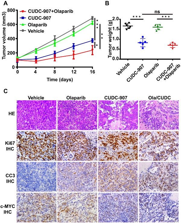 CUDC-907联合olaparib有效抑制PDX肿瘤增殖