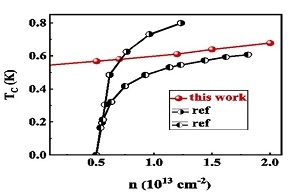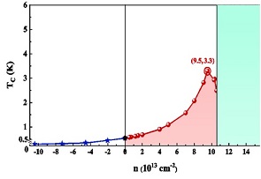 删极电压是一种调节量子材料中载流子浓度的有效手段。在拓扑材料中引入载流子实现超导态是探索拓扑超导的可能途径。理论和实验表明单层1T’-WTe2可以表现出高温量子自旋霍尔效应。2018年实验上报道通过删极电压调控手段在单层1T’-WTe2中引入电子型载流子可以在该体系中实现超导,此外超导态的上临界场表现出巨大的面内外的各向异性,并且不受泡利顺磁极限的约束。如何理解删极电压调控单层1T’-WTe2的超导电性的机理以及超导态的特性是一个重要的科学问题。