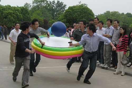 夹球跳接力、团体跳绳和雷霆战鼓接力都是团队协作项目,需要队员之间的默契配合,一个很小的失误都会严重影响比赛成绩。令人欣慰的是,在这几个比赛项目中,强磁场中心代表队在保证速度的同时全部做到了零失误。尤其在跳绳比赛中,摇绳队员和跳绳队员配合默契,摇绳节奏适当,跳绳动作轻盈快捷、流畅自然,获得了观众的一致称赞。