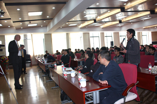 生物磁共振成像所具有的独特技术优势使其在生物成像、认知神经科学、临床医学等重要科学领域得到了广泛的重视及应用。随着物理手段及电子技术的进步,高场下磁共振成像的研究正成为磁共振成像研究的重要方向。Hennig教授是磁共振成像领域的先驱者之一,在该领域享有崇高的声誉。在过去25年的研究中,他领导的研究小组开发了一系列领先的磁共振成像技术手段,其中包括快速回波成像、磁脑电图、非线性成像技术等。Hennig教授在中科院强磁场中心作了题为“极高场下磁共振成像的挑战与机遇”的报告,介绍了磁共振成像在极高磁场下的最新技术方法,讨论极高磁场下磁共振成像的优势及技术挑战以及最新研究成果等; Hennig教授在中国科技大学作了题为“磁共振成像:生命的视野”的专题讲座。Hennig教授以通俗易懂的科普语言,向听众介绍了磁共振成像在认知、神经科学、临床医学等生命科学中的应用前景,磁共振成像的新技术方法与手段以及其最新研究进展。来自中科院合肥物质科学研究院强磁场科学中心、技术生物与农业工程研究所、医学物理与技术中心、安徽医科大学以及中国科技大学相关学科的科研人员、医生、研究生和部分高年级本科生聆听了二场学术报告会。报告会上,听众纷纷提问,向大师请教,现场气氛十分活跃。Hennig教授不但学识渊博、幽默风趣,一席带德国口音的汉语开场白更博得了满场喝彩,拉近了台上与台下、德国知名科学家与普通中国听众的距离。