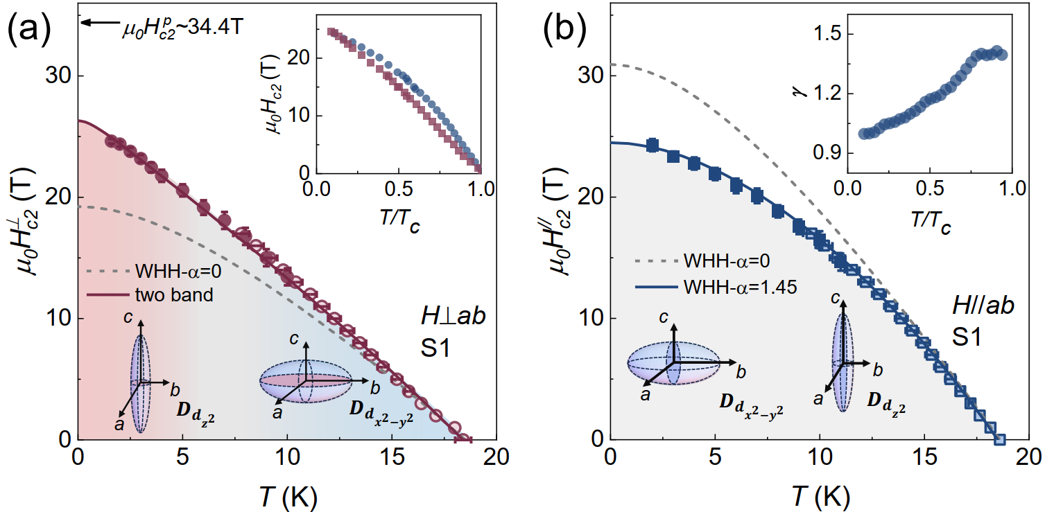 图1. 三层镍酸盐La4Ni3O10-δ强磁场下两个方向的超导上临界场相图