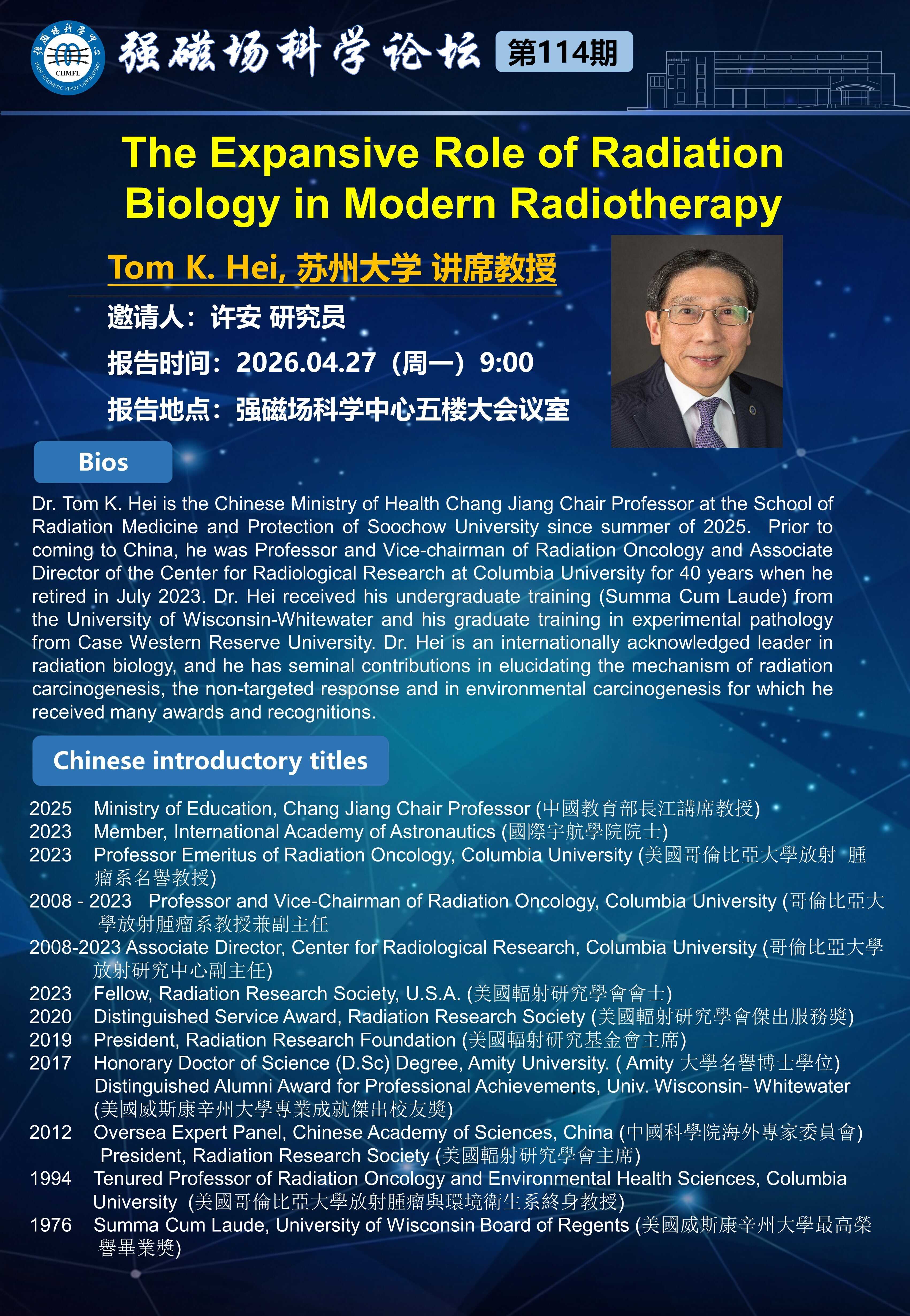 强磁场科学论坛第114期:The Expansive Role of Radiation Biology in Modern Radiotherapy