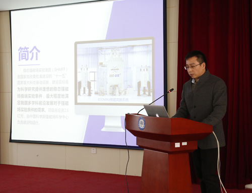 中科院强磁场科学中心磁体运行与实验测量部主任皮雳向大会作“SHMFF 2018年运行工作总结及2019年运行计划”报告; 来自中科院物理所的刘恩克和来自中国科大的熊伟作为用户代表做了用户报告。