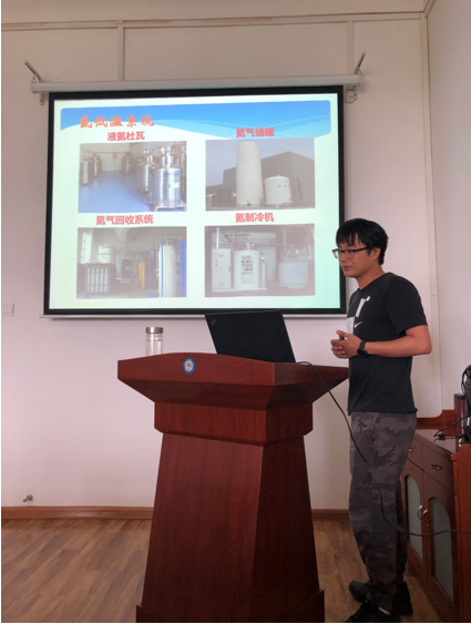 氦低温系统为稳态强磁场实验装置四大技术装备系统之一,主要为40T级混合磁体外超导磁体供冷,并兼有支持装置其他超导实验的能力。艾鑫同志主要负责氦低温系统的运行和气液管理工作。在培训中,他结合自身系统运行经验,从氦低温系统介绍,低温液体特性,常见低温杜瓦容器,液氦生产、传输和回收,液氮使用,安全防护等方面为大家作了详细讲解。并结合视频、图片等方式图文并茂地向大家着重介绍了在使用低温液体和低温杜瓦容器时的规范操作步骤和使用安全注意事项,并希望大家能重视加强低温液体和气体的安全使用和科学管理,为强磁场中心的科研成果产出提供有效、安全的保障。