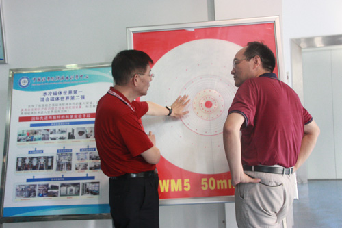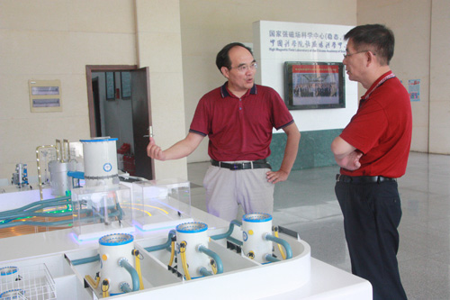 9月10日,中科院邓麦村秘书长调研强磁场中心。合肥研究院副院长吴四发、综合处处长程艳、技术科研处副处长谭立青陪同调研。强磁场中心主任孙玉平向邓麦村介绍了稳态强磁场实验装置各磁体的性能和测试系统、强磁场下开展的科学研究、取得的成果等情况。孙玉平介绍,水冷磁体创造了多项国际纪录、大型强磁场铌三锡超导磁体技术获得重大突破;首创国际水冷磁体扫描隧道显微镜、组合显微镜等独特的实验测试系统;SHMFF用户已经利用稳态强磁场条件开展了一批前沿课题研究,取得了诸多优质研究成果。