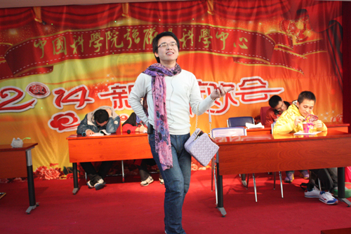 一群可爱研究生的舞蹈《新年咿呀嘿》热热闹闹地拉开了联欢会的序幕。《研究僧那些事儿》把研究生搞笑日常生活趣事搬到了舞台,体现了处于青葱岁月的研究生们的五彩生活,现场观众无不捧腹。强磁场版《新白娘子传奇》笑爆全场。小品《相亲记》中生命科学部一群科研人员一改严肃面貌,特别是那位姓“哥”名“有钱”的角色把现代社会中一些轻浮之风表演地淋漓尽致。男中音清唱《伏尔加船歌》的专业水平让人刮目相看,情歌对唱《因为爱情》温暖传递全场,精彩的魔术表演让人惊叹不已。三句半《科岛诵》把科学岛和强磁场中心美丽的环境和强劲的发展势头简单明了地表达出来。抽奖和游戏环节更把联欢会的气氛一步步推向高潮。联欢会在合唱《相亲相爱》中圆满落幕。