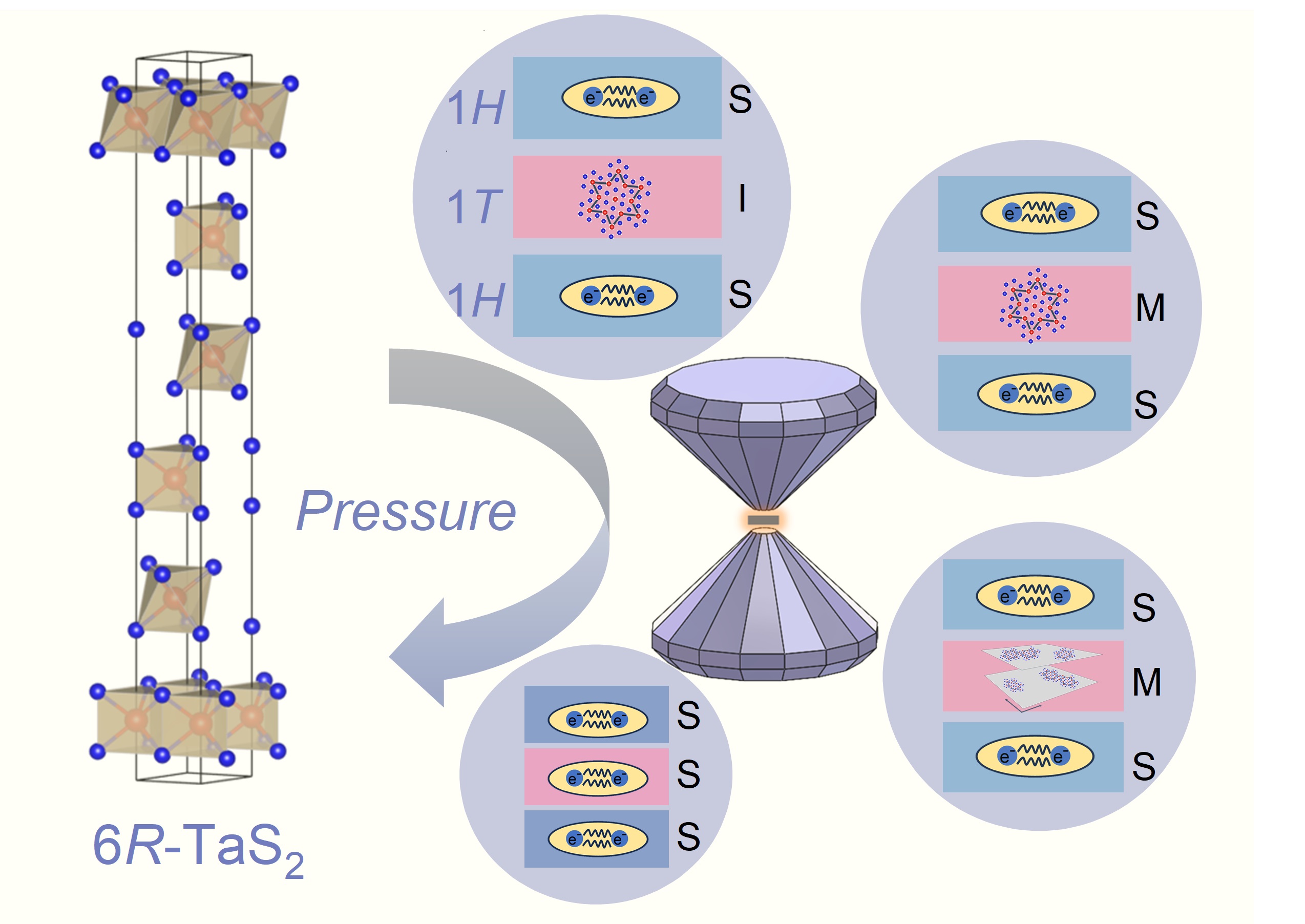 图1. 压力调控6R-TaS2中约瑟夫森耦合的示意图