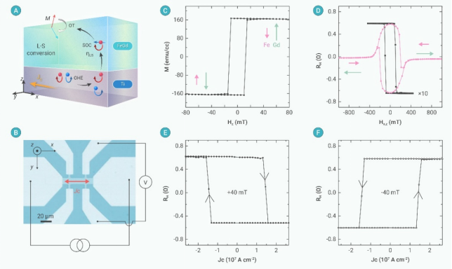 本研究成果在轨道电子学领域具有重要的科学意义和应用价值。首先,该研究首次实验证实了仅使用轻金属Ti即可实现亚铁磁垂直磁化的轨道转矩翻转,摆脱了对传统重金属材料的依赖。其次,研究明确了轨道转矩效率与磁性材料自旋轨道耦合强度之间的强相关性,为相关理论发展提供了重要实验支撑。此外,该研究还证实了Ti的体相轨道霍尔效应在轨道转矩中的主导作用,为深入理解轨道角动量在磁动力学中的作用机制奠定了实验基础。基于该研究成果,未来有望进一步推动高密度、低功耗轨道电子器件的发展。