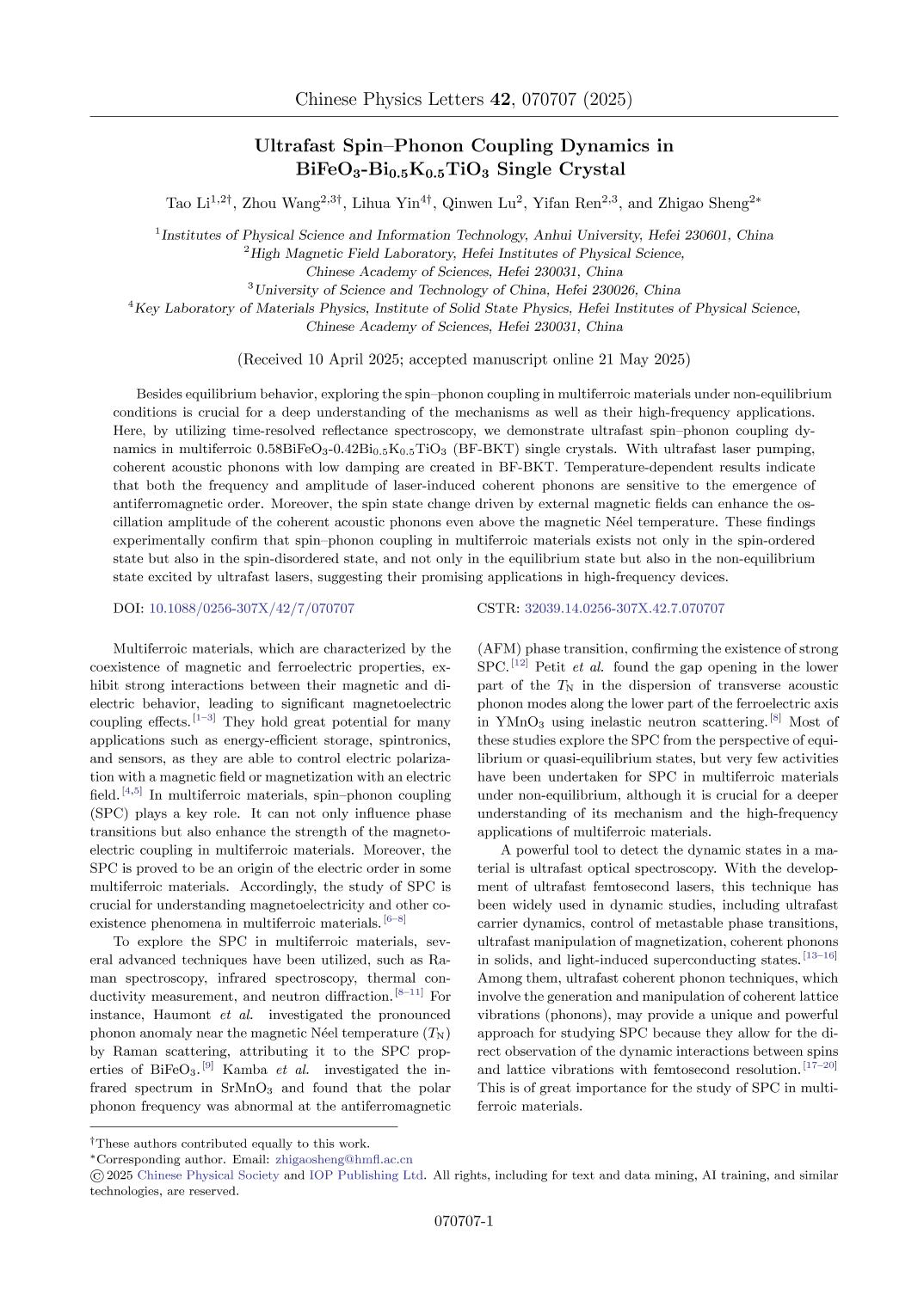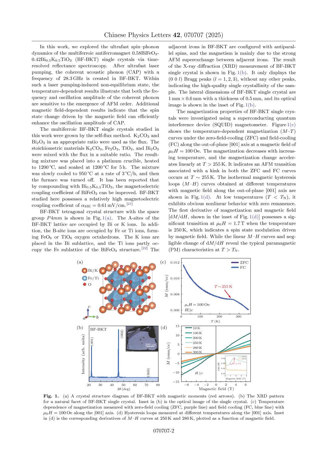 Ultrafast Spin–Phonon Coupling Dynamics inBiFeO3-Bi0.5 K0.5 TiO3 Single Crystal