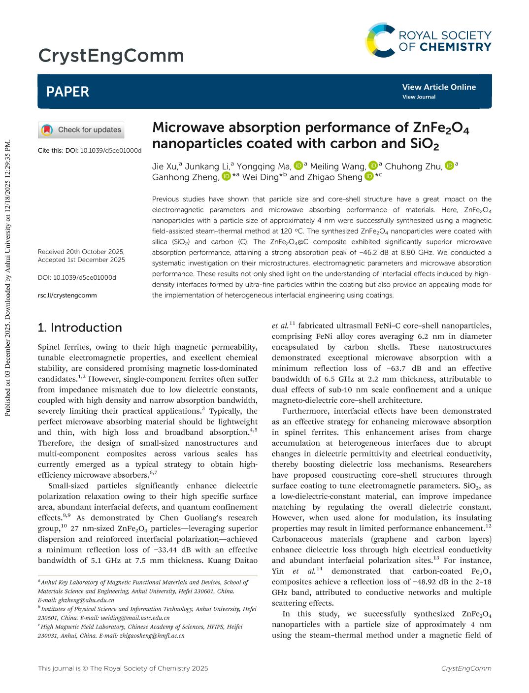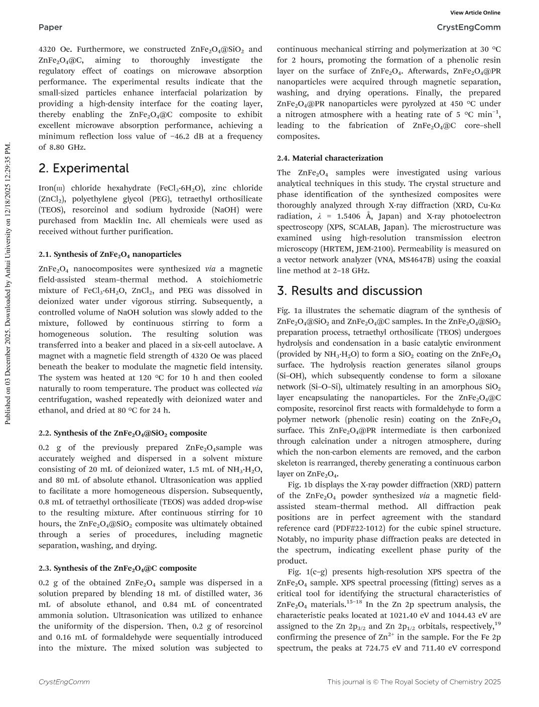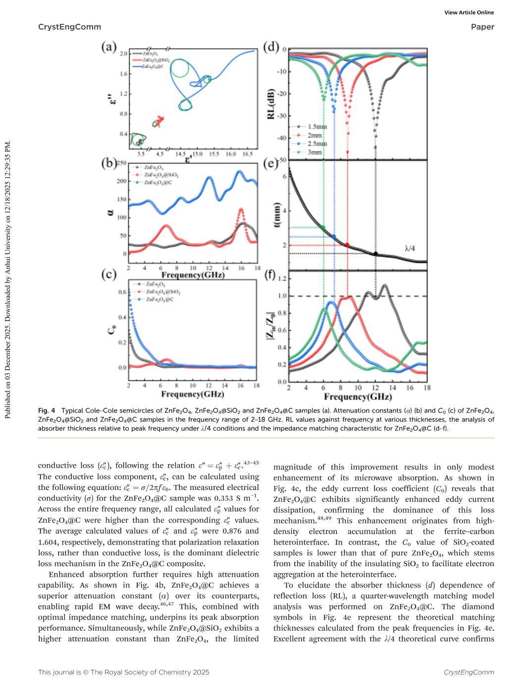Microwave absorption performance of ZnFe2O4 nanoparticles coated with carbon and SiO2