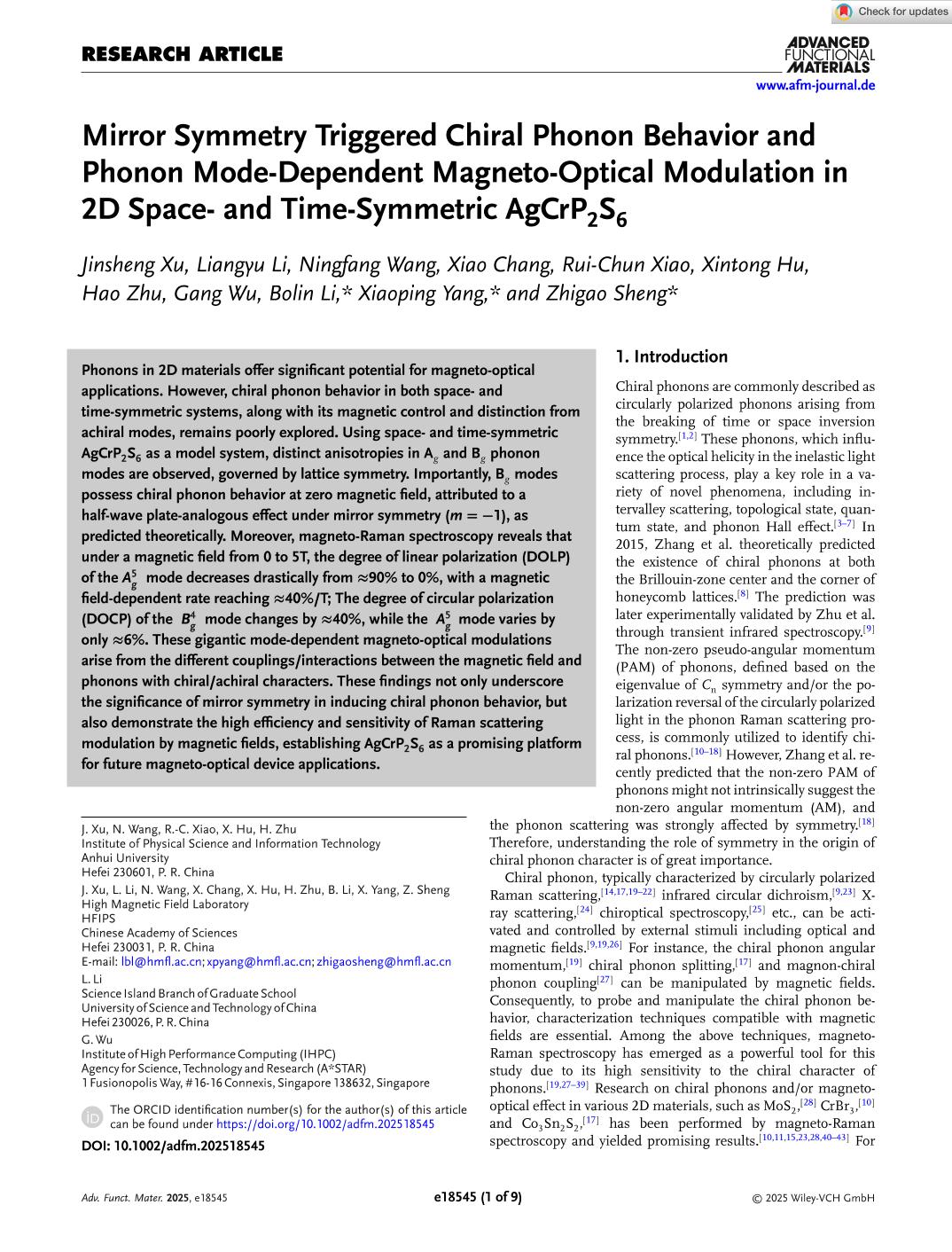 Mirror Symmetry Triggered Chiral Phonon Behavior and Phonon Mode-Dependent Magneto-Optical Modulation in2D Space-and Time-Symmetric AgCrP2 S6